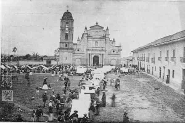 Mercado sabatino en la Plaza de la Constitución Jurada, hoy Parque de Caicedo
