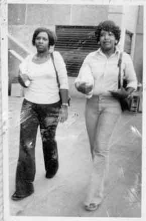 Ana B. Suárez con una amiga en un día de compras en el Bazar Inglés, miscelánea que se encontraba ubicada en el centro de la ciudad. Buenaventura, 1979