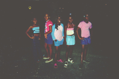 Jovencitas posando a cámara en una noche en el barrio 12 de Octubre