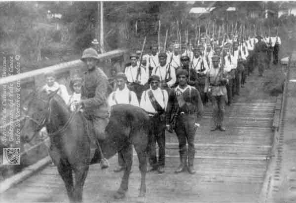 s. n., s. n. & s. n. (1932). Formación de la Compañía de infantería de bomberos de Cali en el conflicto Colombia - Perú, entrenamiento en el puente Meléndez & 500838. OTRO: Biblioteca Departamental Jorge Garces Borrero.