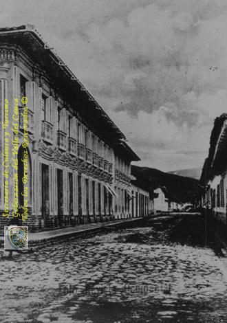 Calle Bolívar, Buga, C. 1910. Hoy Calle 6 con carrera 14, antiguo edificio de Los Portales.