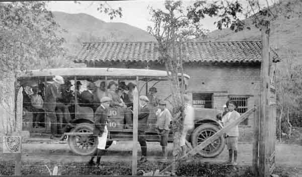 Uno de los primeros transportes públicos de la ciudad. Santiago de Cali. Fecha aproximada, 1930.