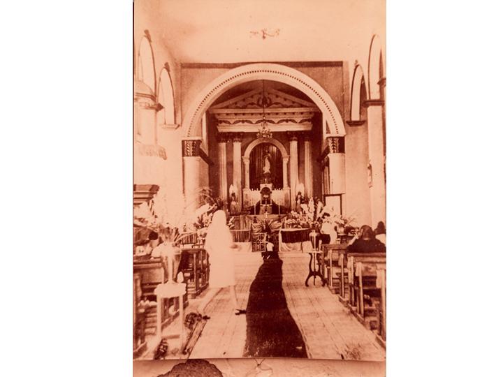 Interior del templo principal de Nuestra Señora de Chiquinquira. El Cerrito, fecha aproximada 1930