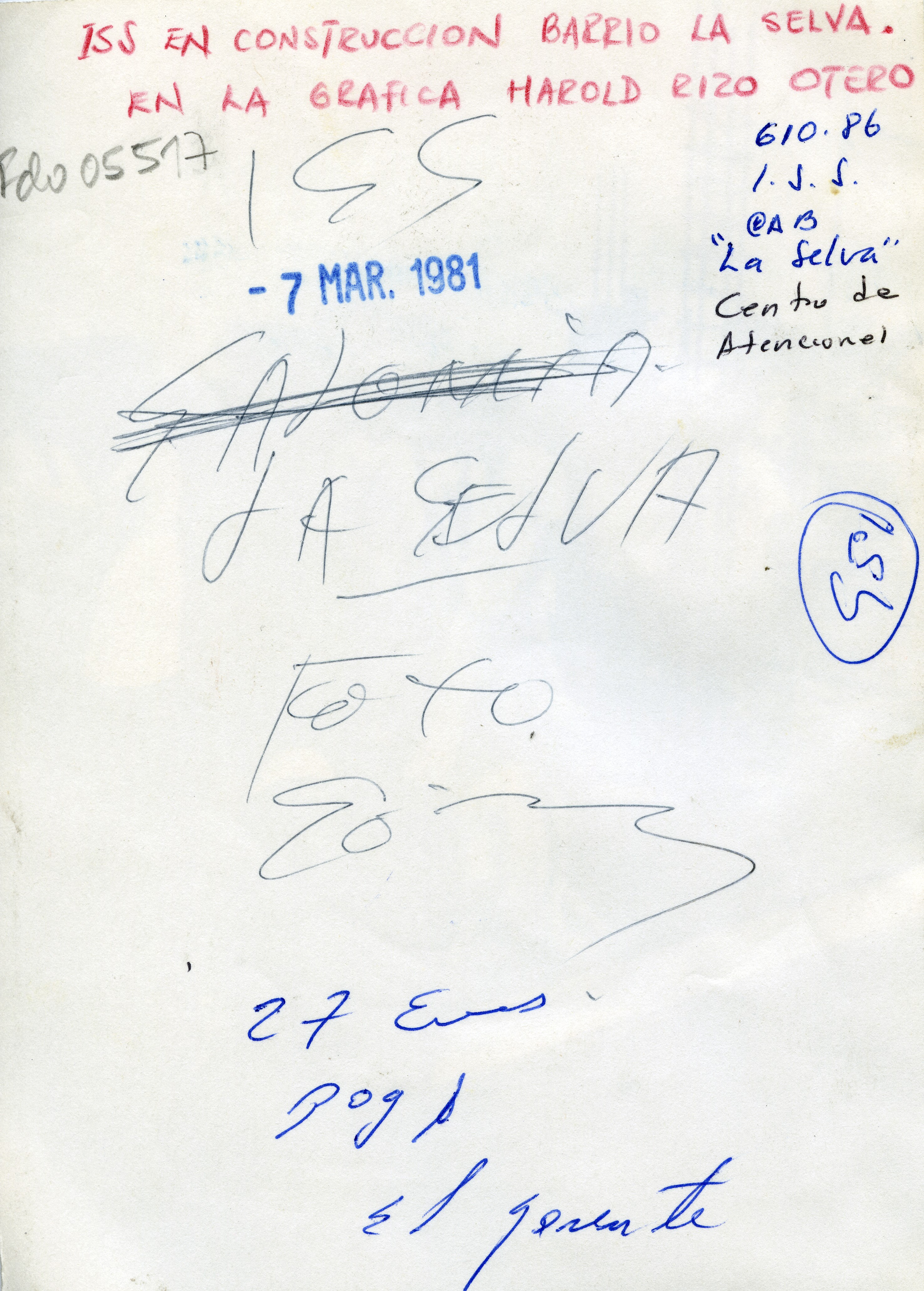 I.S.S en construcción Barrio la Selva, en la gráfica Harold Rizo Otero