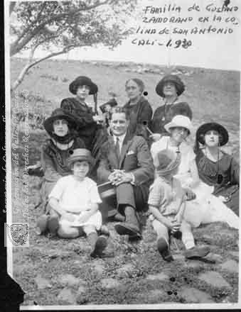 La familia de Gustavo Zamorano en la colina de San Antonio. Cali. 1930.
