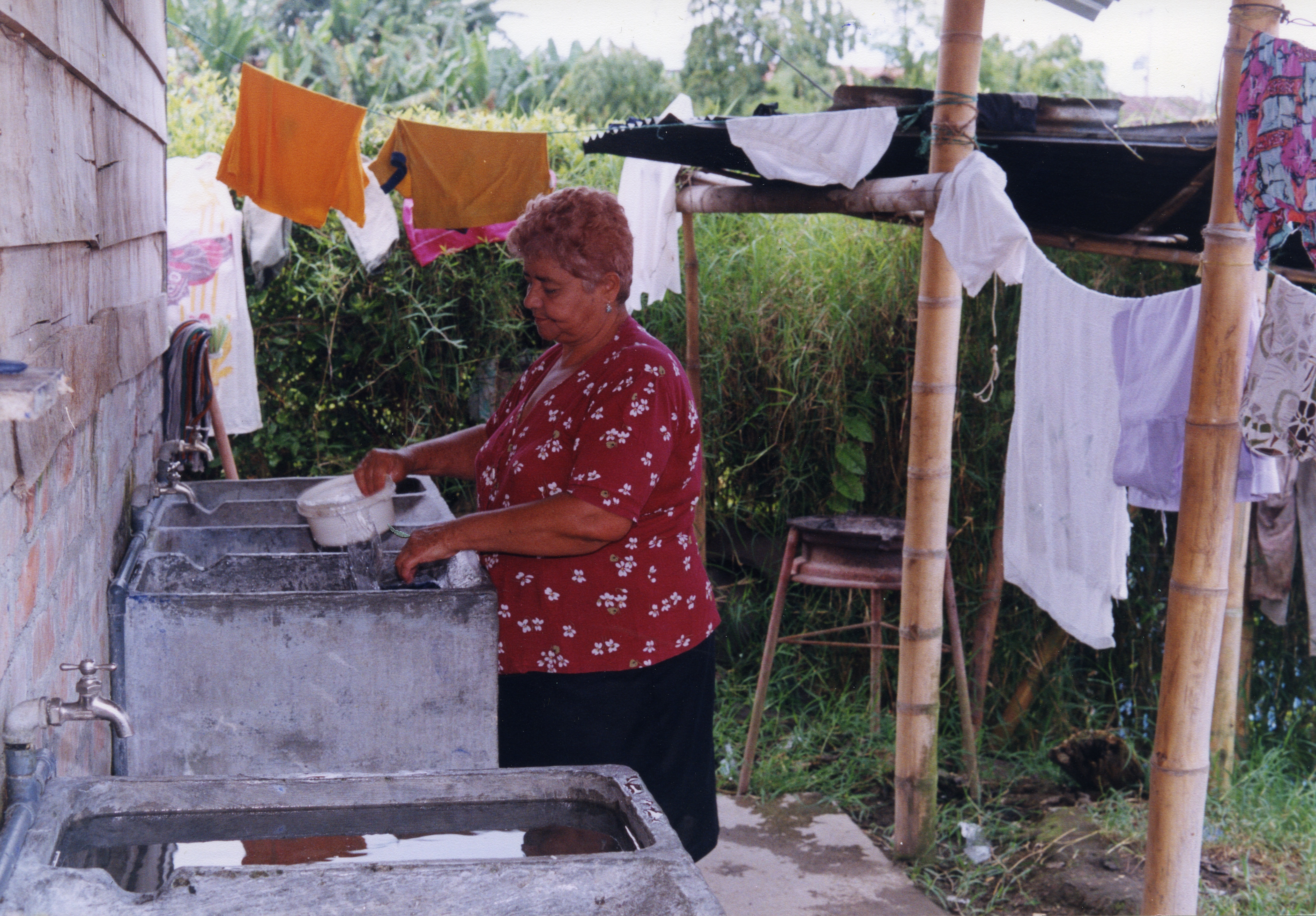 Señora lavando ropa