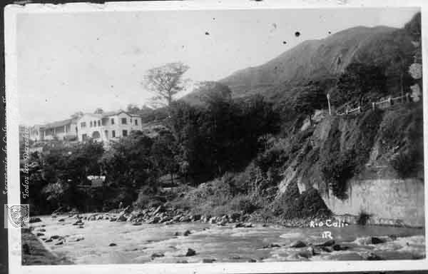 Vista del río Cali. Santiago de Cali, fecha aproximada 1950.