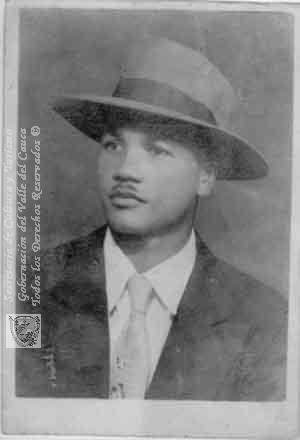 Trifilo Ceballos con la moda de la década de los 40-50, sombrero, corbata y saco. Buenaventura, C. 1945