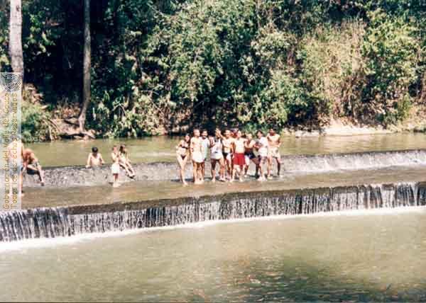 Grupo de amigos disfrutando de las aguas del río La Paila en los Chorros. Zarzal, 1997