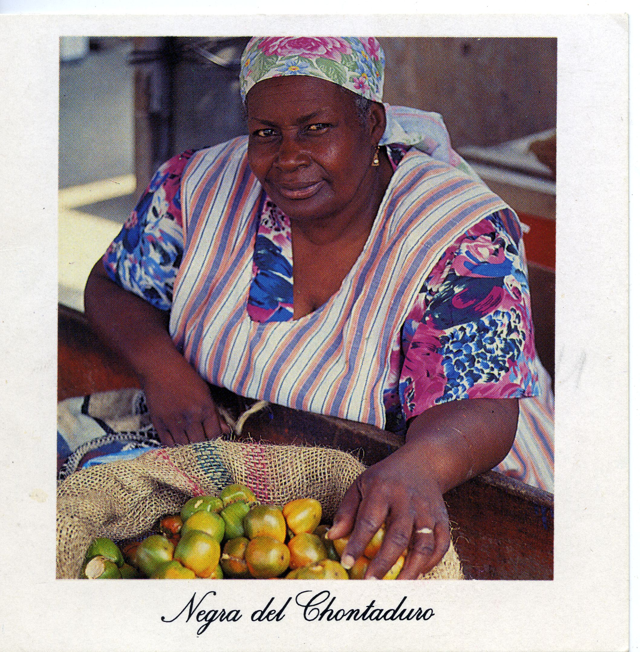 Fotografía de una mujer negra quien vende chontaduros.