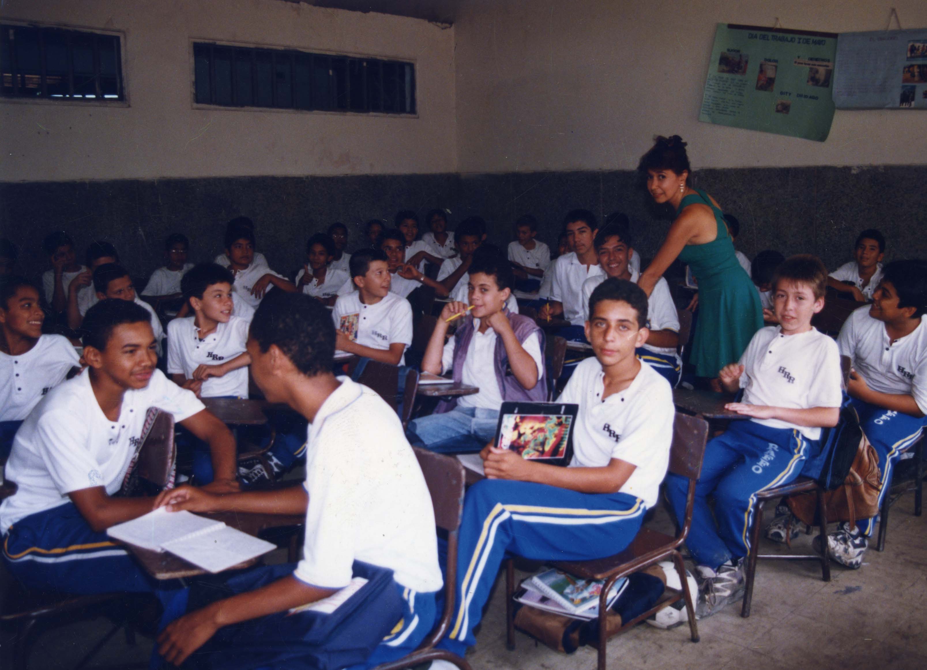 En el pie de foto dice lo siguiente: La calidad en la educación demostrada por los 130 docentes licenciados que tiene a su cargo 64 cursos, ha sido fundamental para que los alumnos siempre se distingan por obtener excelentes resultados en las pruebas del Icfes. Observamos los estudiantes en clases