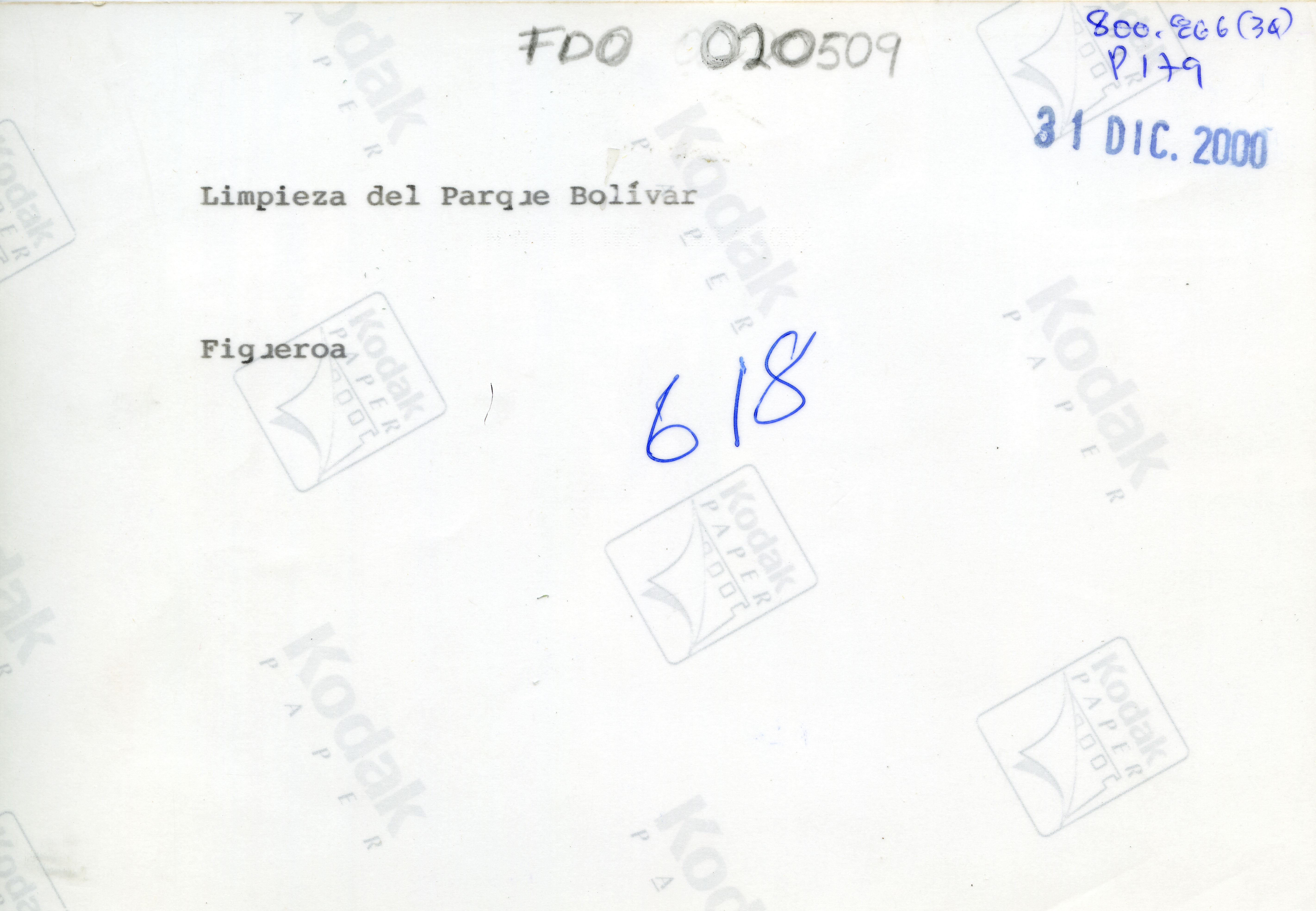 Parque Bolívar de Palmira. Se aprecia jornada de limpieza con participación de la alcaldía, soldados, etc. Lavando parque con máquina de los bomberos voluntarios los militares limpian y desinfectan