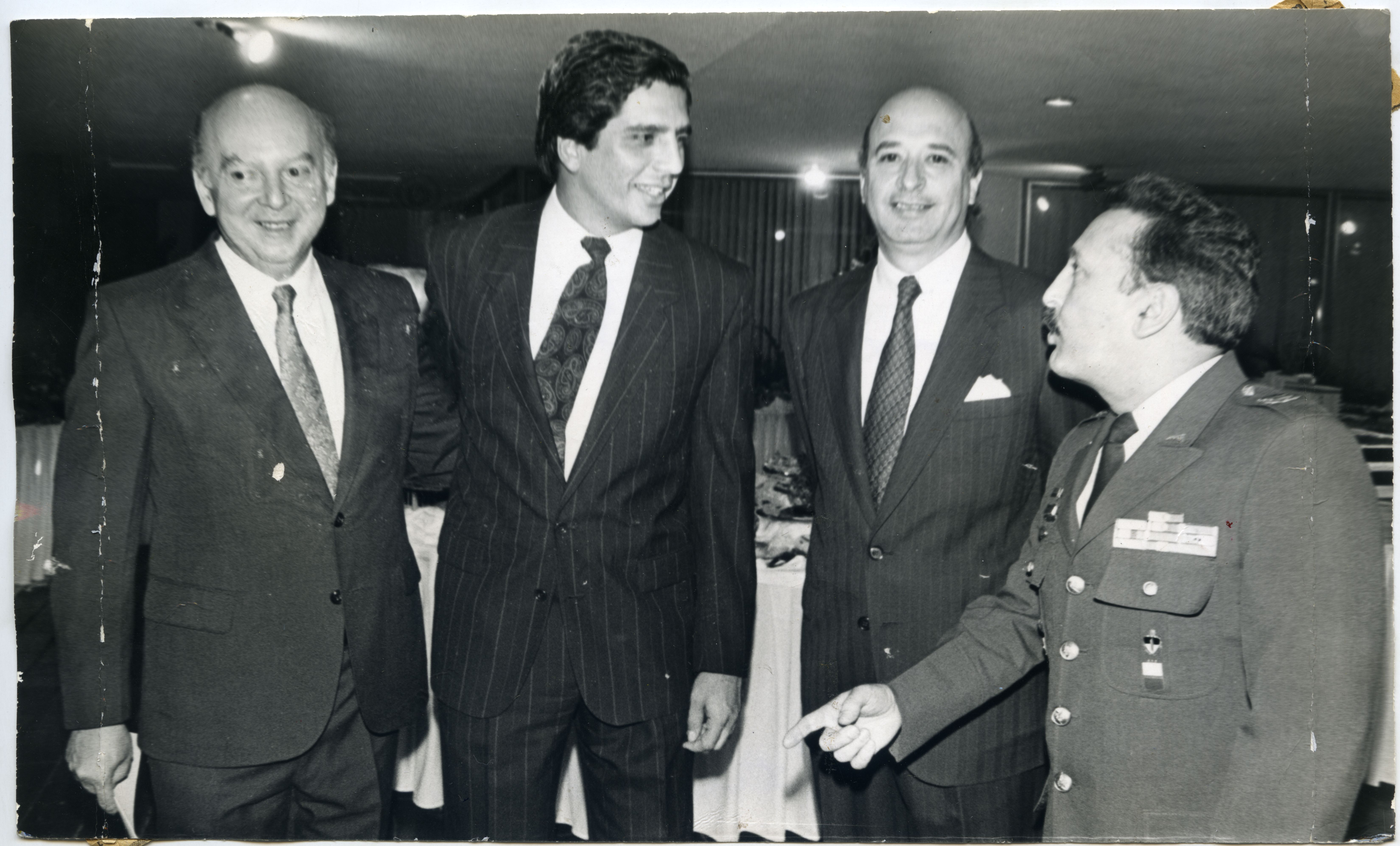 Se aprecia de izquierda a derecha: Jaime Victoria Valencia, Mauricio Guzmán Cuevas, gobernador, Sabas Pretelt de la Vega, Luis Ernesto Gilibert Vargas, Comandante Policía Nacional. Observamos a los mandatarios disfrutando del evento en el Hotel Intercontinental de Cali