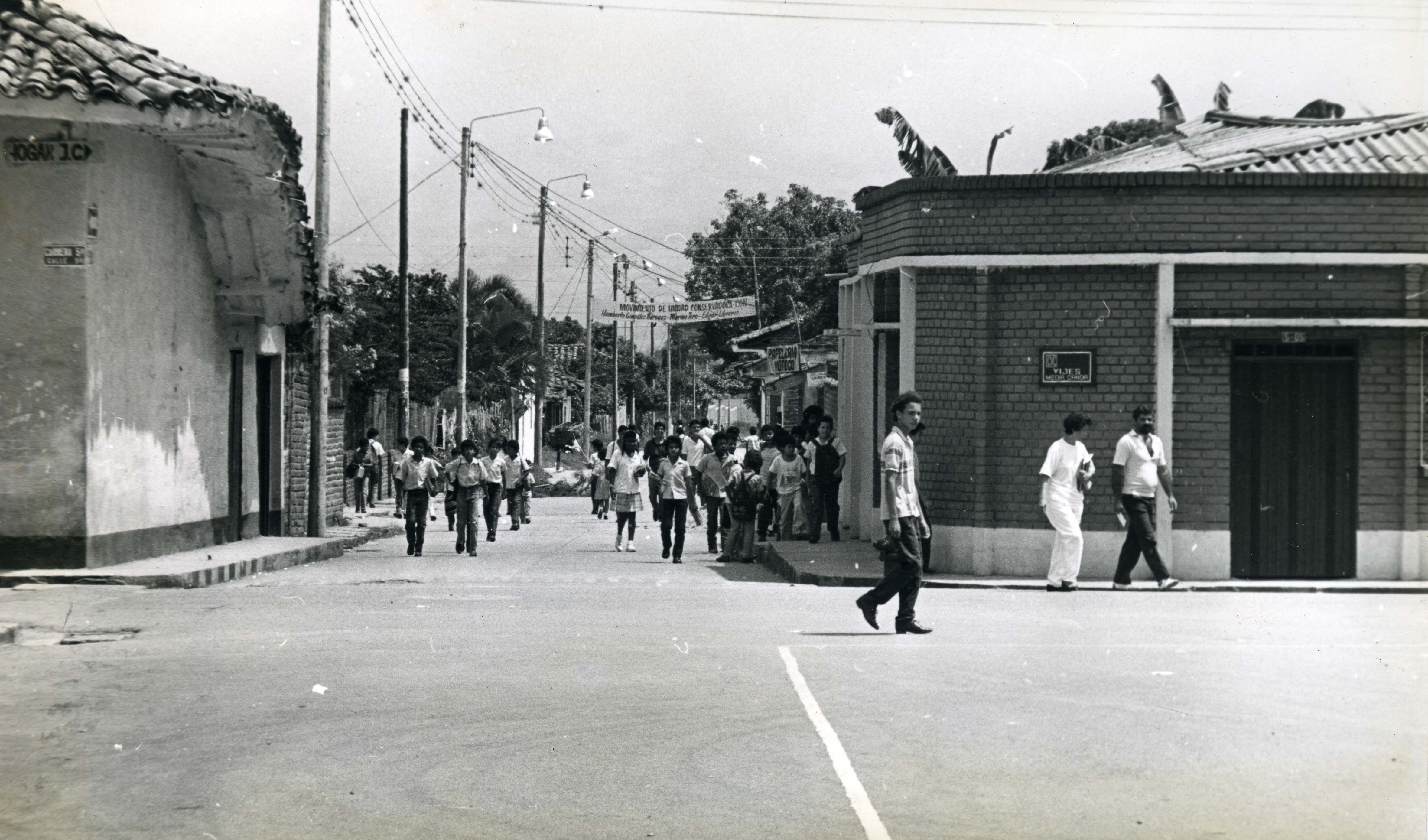En el pie de foto dice lo siguiente: por las calles de Yotoco caminan todos los estudiantes que con mucha alegría van a sus clases