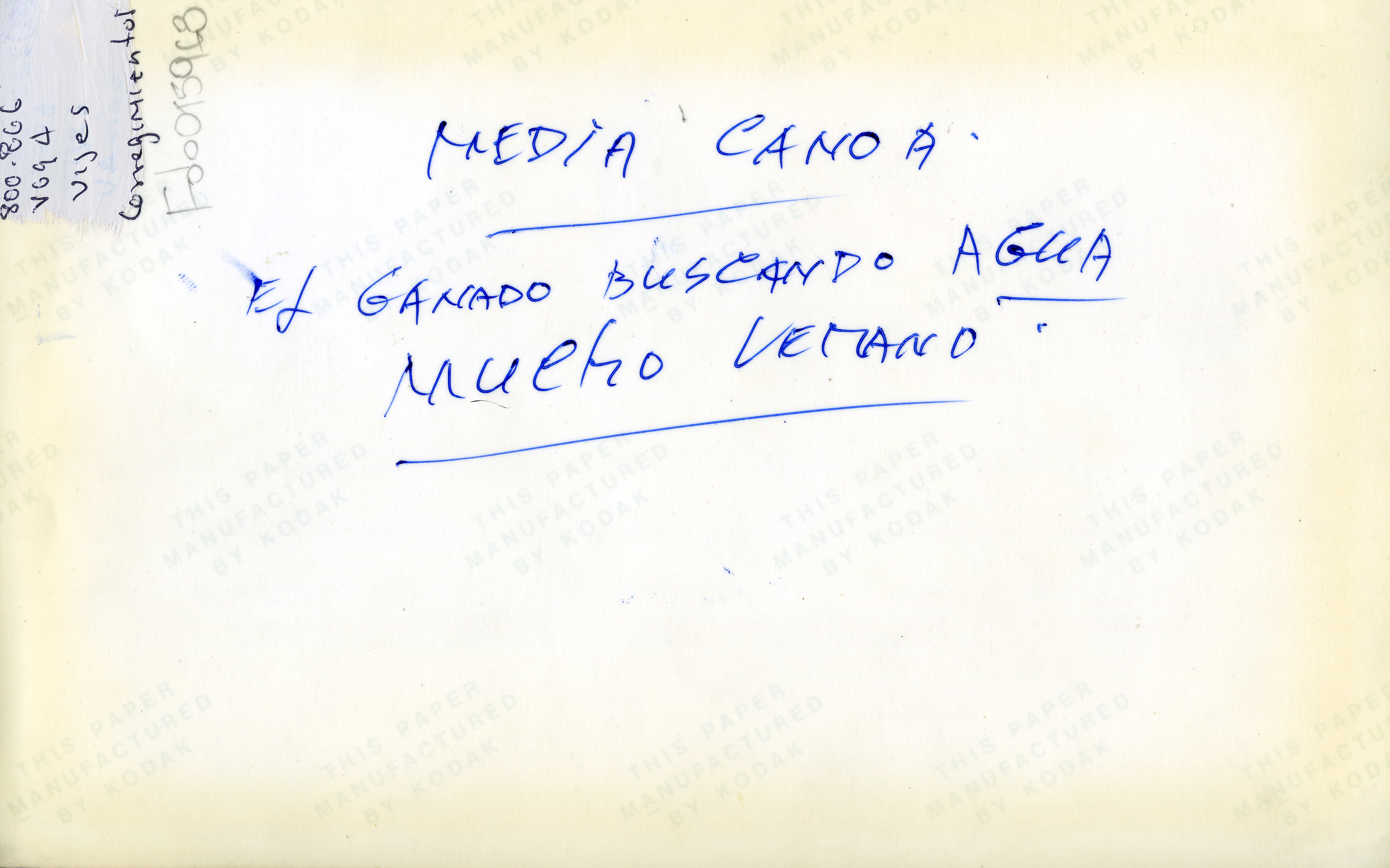 En la fotografía se observan vacas en un lago de Vijes. Al reverso dice: ¨Media Canoa. El ganado buscando agua. Mucho verano.¨