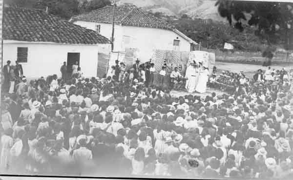 Procesión en la Fiesta de Los Reyes Estas congregaciones constituyen la manifestación del fervor de la comunidad alrededor de las fiestas decretadas por la iglesia católica. Yotoco, 1940.