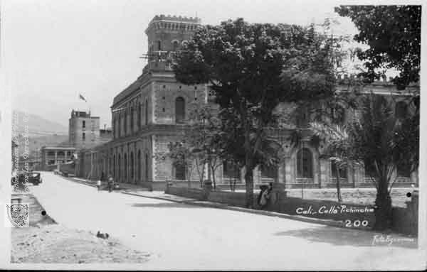 Calle Pinchincha, donde se alcanza a divisar las instalaciones del Batallón Pichincha. Hoy desaparecido por el falso progreso. Santiago de Cali, C.1930.