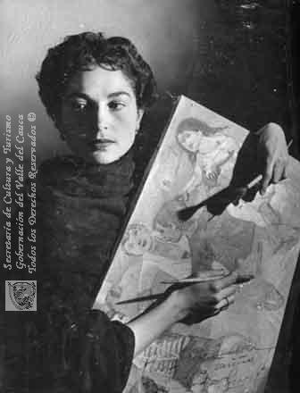 LEO MATIS (1952). La pintora Lucy Tejada, exalumna del Liceo Benalcázar, fotografiada por Hernán Díaz & 501150. SANTIAGO DE CALI: Biblioteca Departamental Jorge Garces Borrero.