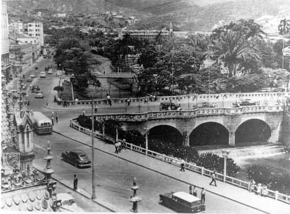 El Puente Ortiz, majestuosa obra arquitectónica que le da mucha elegancia a la ciudad. Santiago de Cali, fecha aproximada, 1950