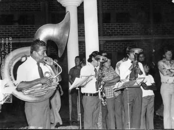Presentación popular de la banda de música. Fecha indeterminada