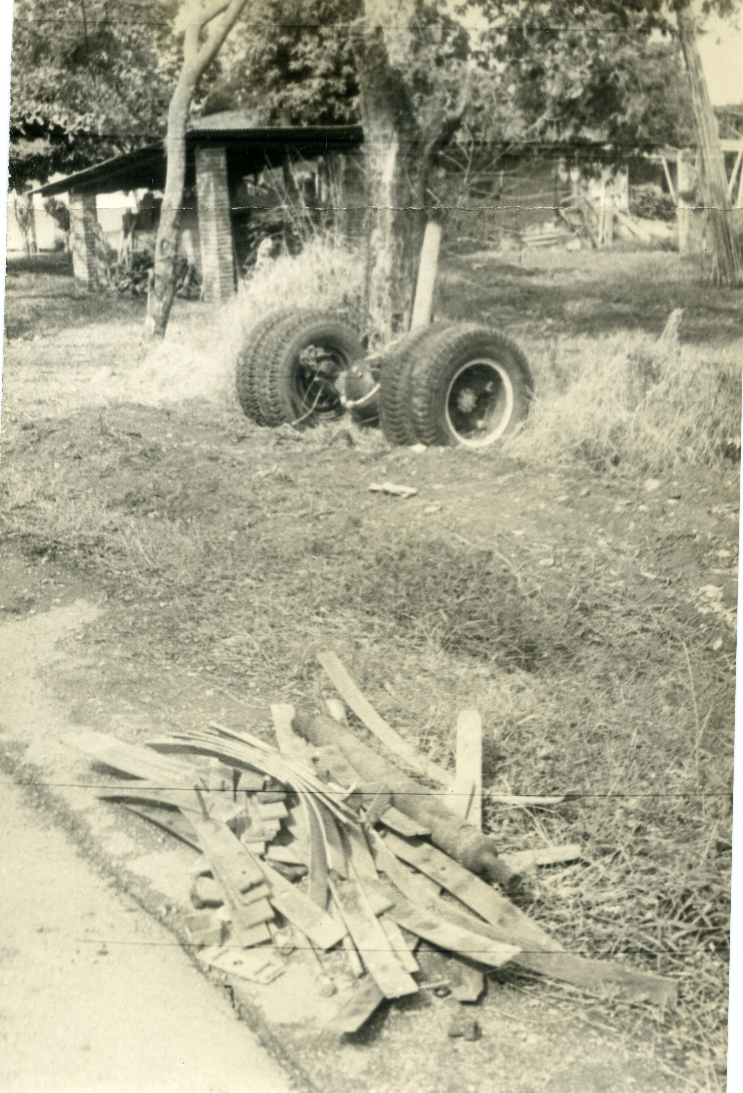 En la fotografía podemos observar dos llantas a un lado de la vía, éstas pertenecian a una de las dos volquetas que protagonizaron un accidente de tránsito en El Cerrito.
