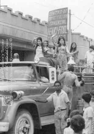 Caravana recorriendo las calles de Florida, en una de las celebraciones típicas del municipio. Florida, 1970.