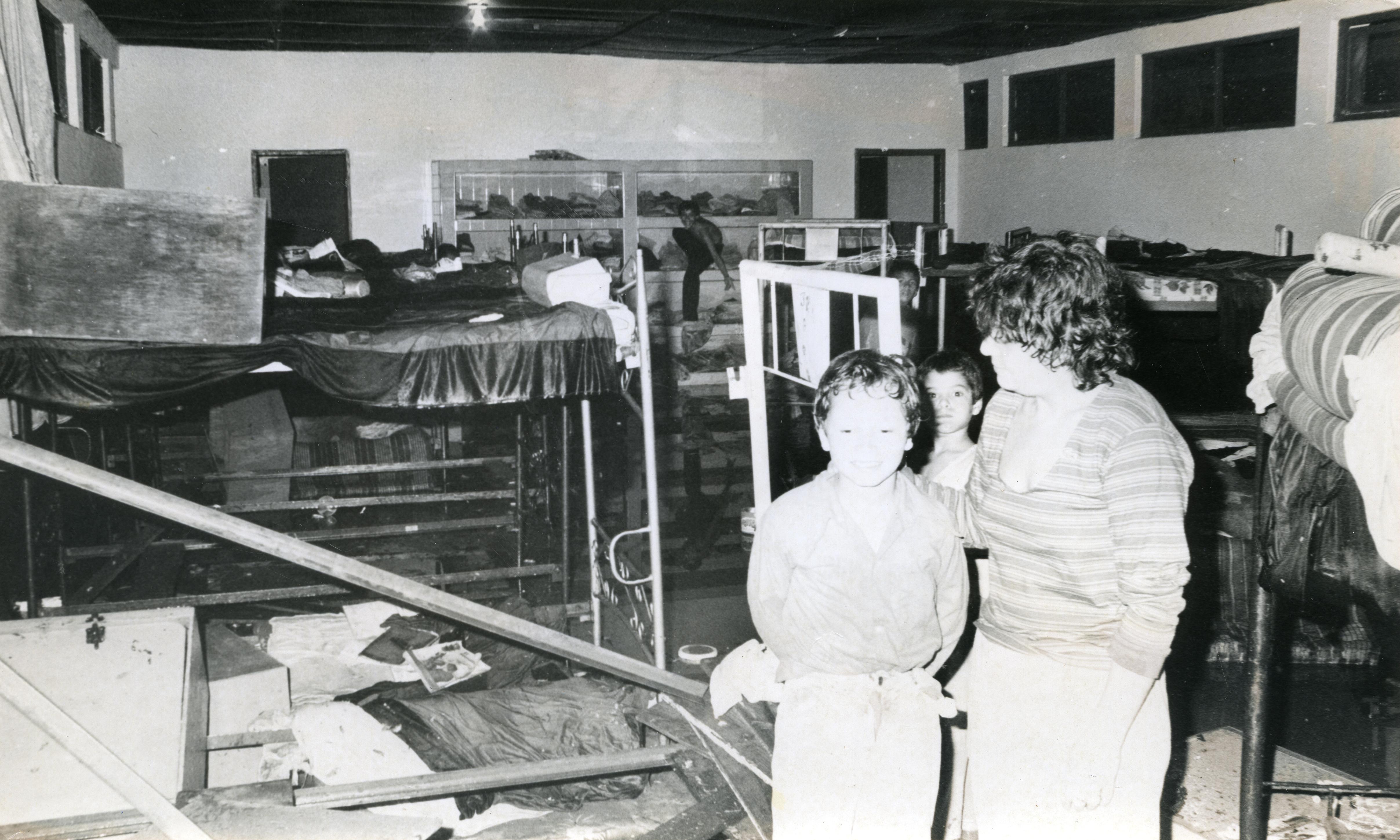 En la gráfica se aprecia niños y mujer adulta en el interior de la vivienda afectados de la inundación