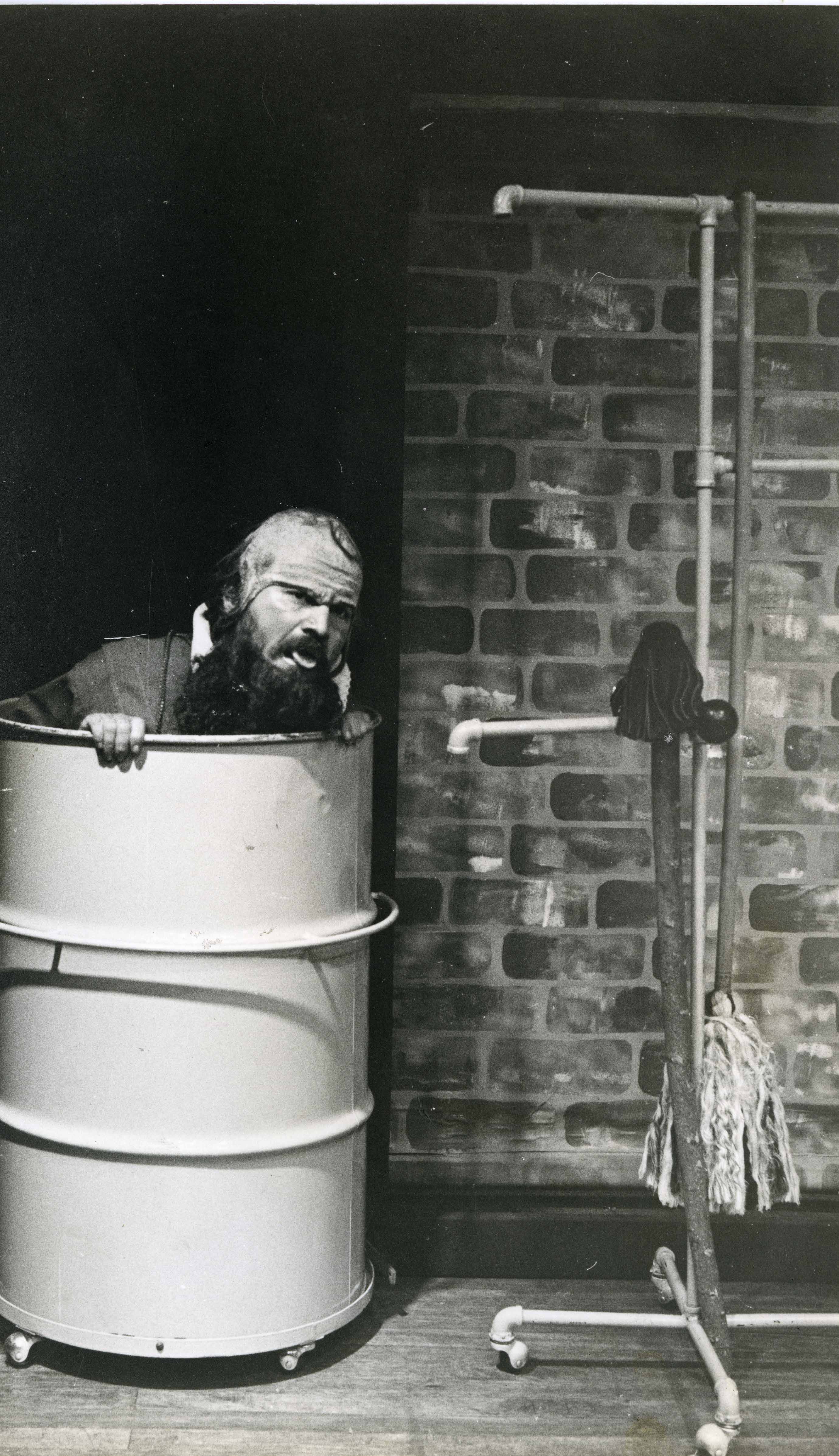 En el pie de foto dice lo siguiente: "Encarnación" creación colectiva que se presenta durante el Festival en La Esquina Latina. En escena Orlando Cajamarca, actor y director del grupo de teatro de máscaras.- El Archivo del Patrimonio Fotográfico y Fílmico del Valle del Cauca es responsabilidad de la Biblioteca Departamental del Valle Jorge Garcés Borrero, por convenio de cooperación suscrito con la Secretaria del Cultura Departamental, con el fin de aunar esfuerzos para su conservación, preservación y divulgación del Archivo entre la comunidad Vallecaucana, especialmente entre los estudiantes e investigadores que visitan la Biblioteca, propiciando el su uso y consulta permanente. La universidad Icesi es un colaborador en el proceso de difusión, facilitando la tecnología que permite la consulta de las imágenes.