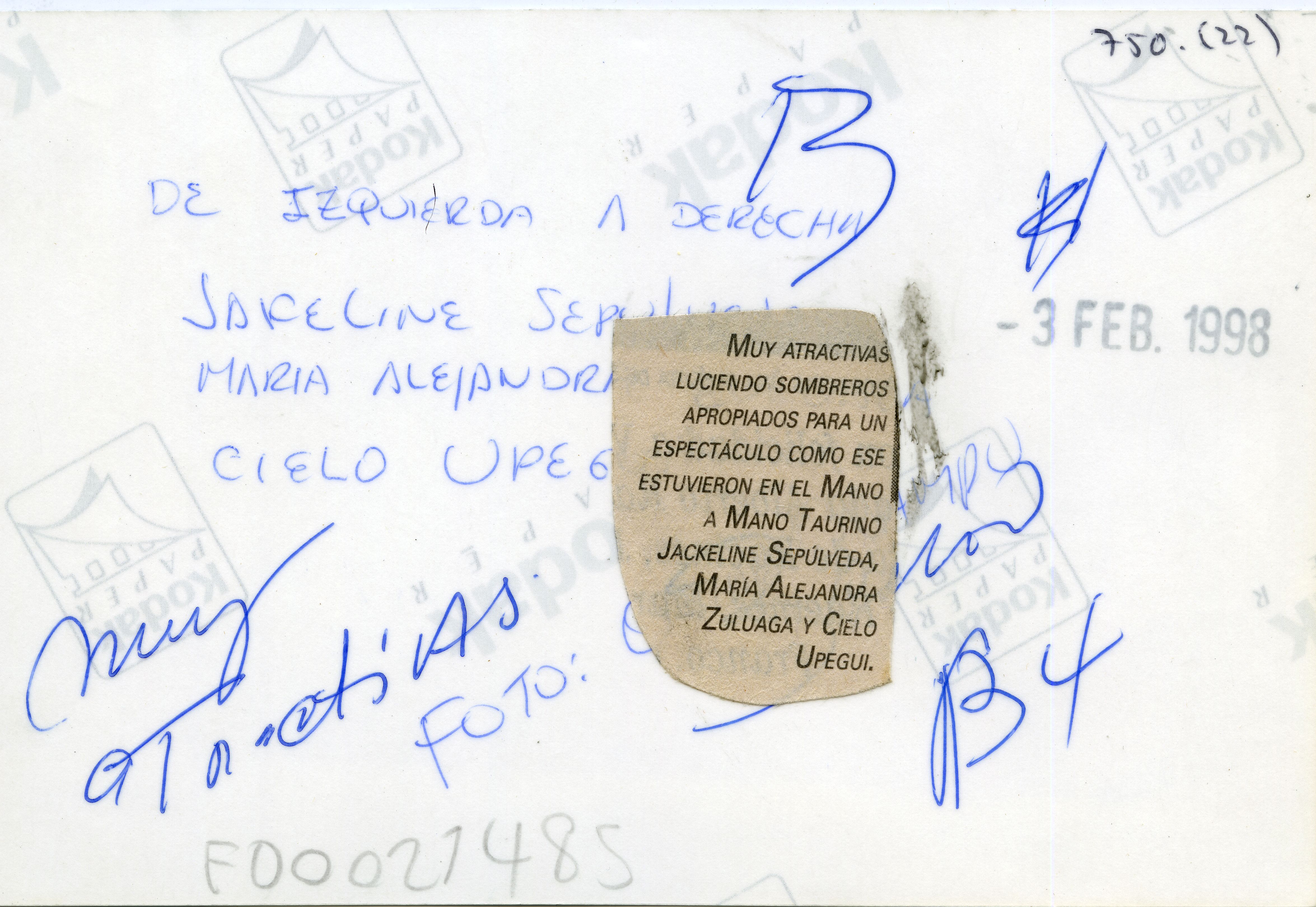 Reverso:Sí- a falta de tener una buena tarde de toros hemos decidido darle cabida a las lindas caras de las aficionadas. Como quiera que no hubo faenas