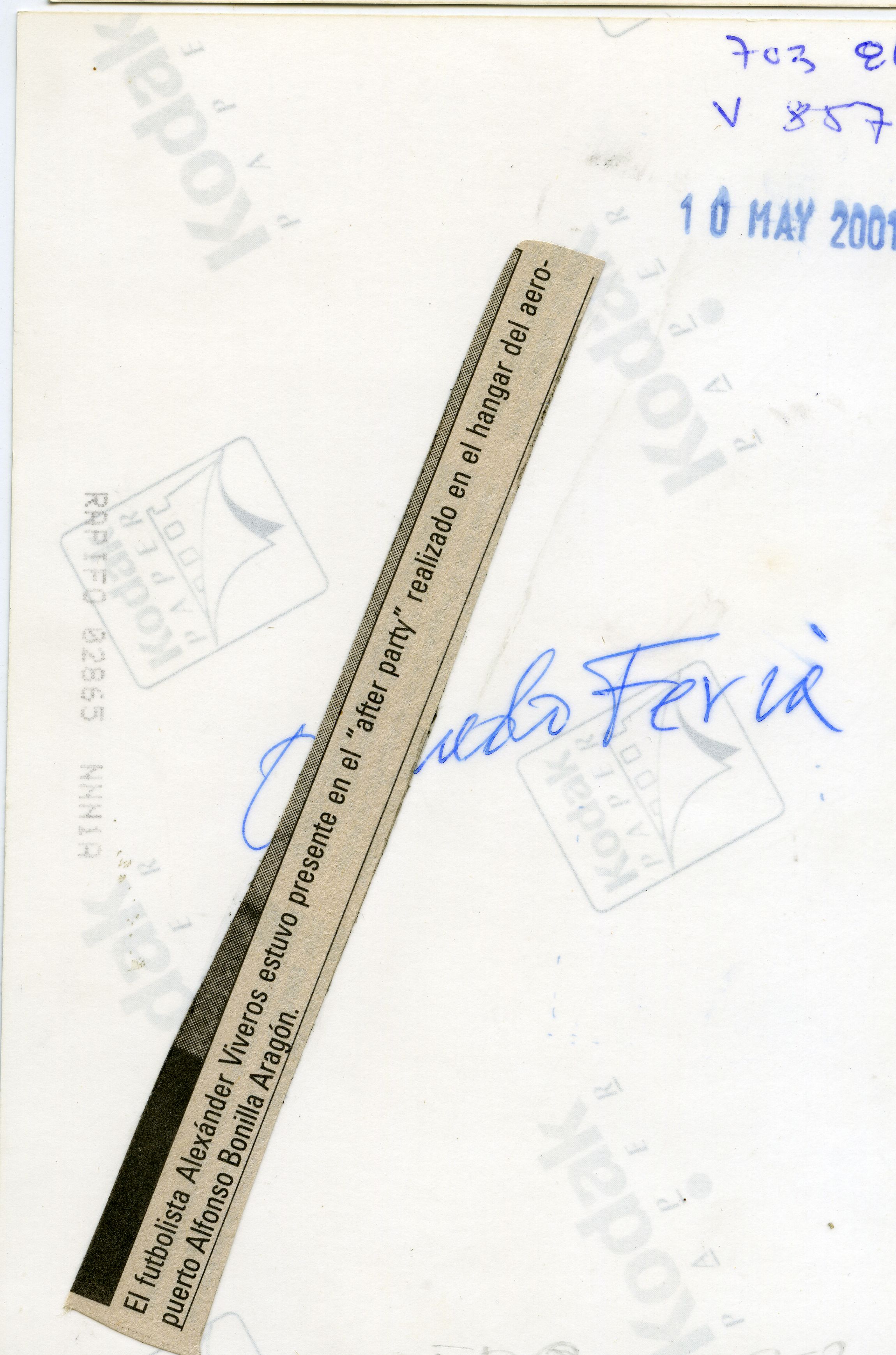 Reverso"El futbolista Viveros estuvo presente en el "after party" realizado en el hangar del aeropuerto Alfonso Bonilla Aragón"