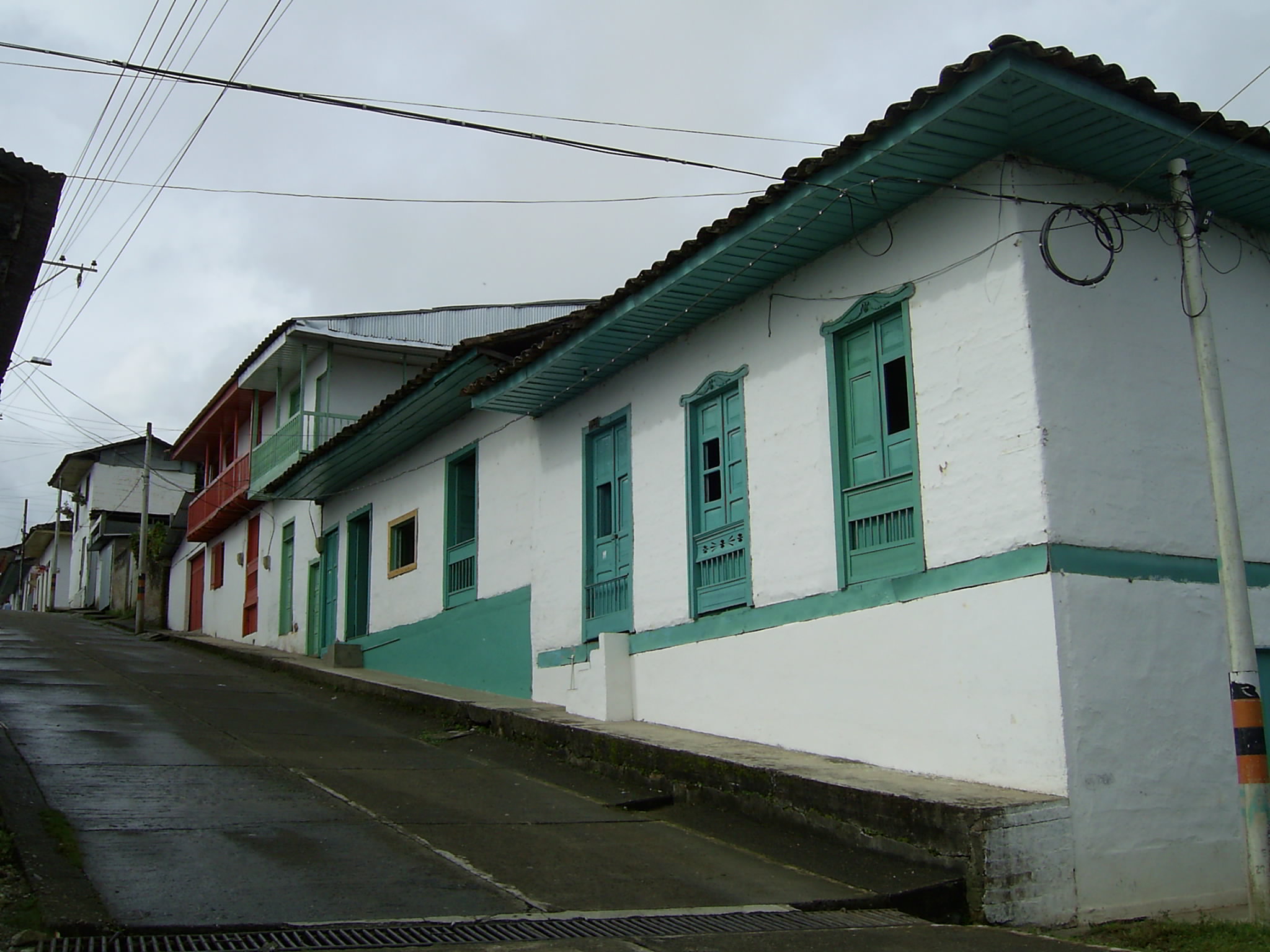 El Cairo, Valle del Cauca. Fundado en 1920, por Pedro Arango y otros. Nombres: Las Vueltas, Haceldama. Municipio desde 1947. Economía importante en agricultura, caficultura, entre otros. Observamos en la imagen, espacio urbano. La casa del frente es de doña Chila