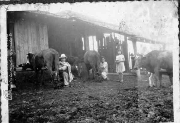 Trabajadores ordeñando las vacas, Barragán. Tuluá. 1955.