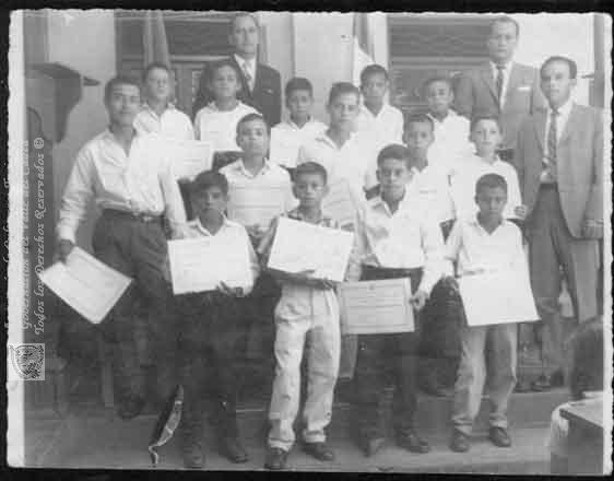Profesores y alumnos de la Escuela. Bolivar, 1963.