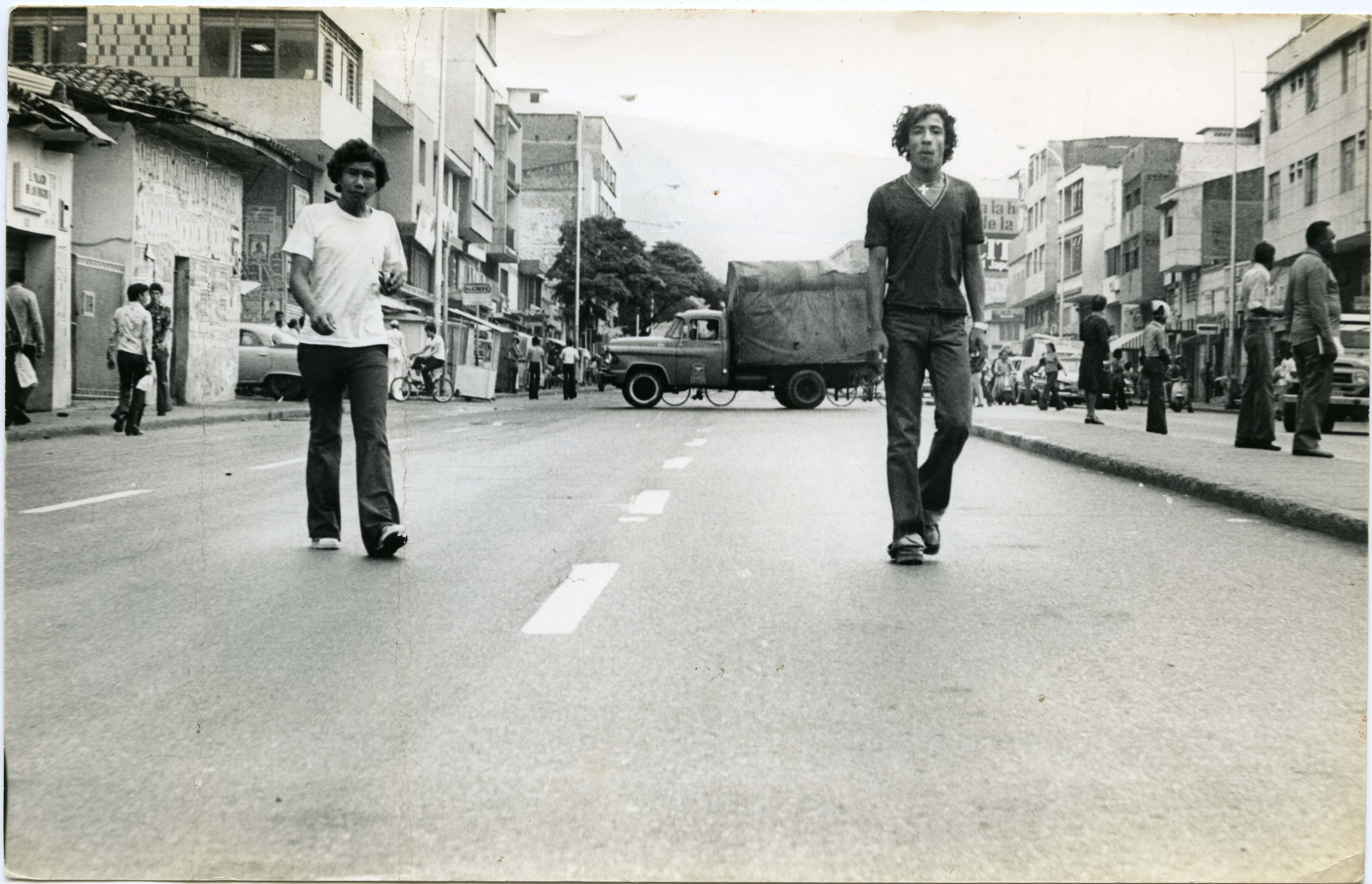Centro de Cali. Observamos dos hombres caminando por la calle 15 de Cali
