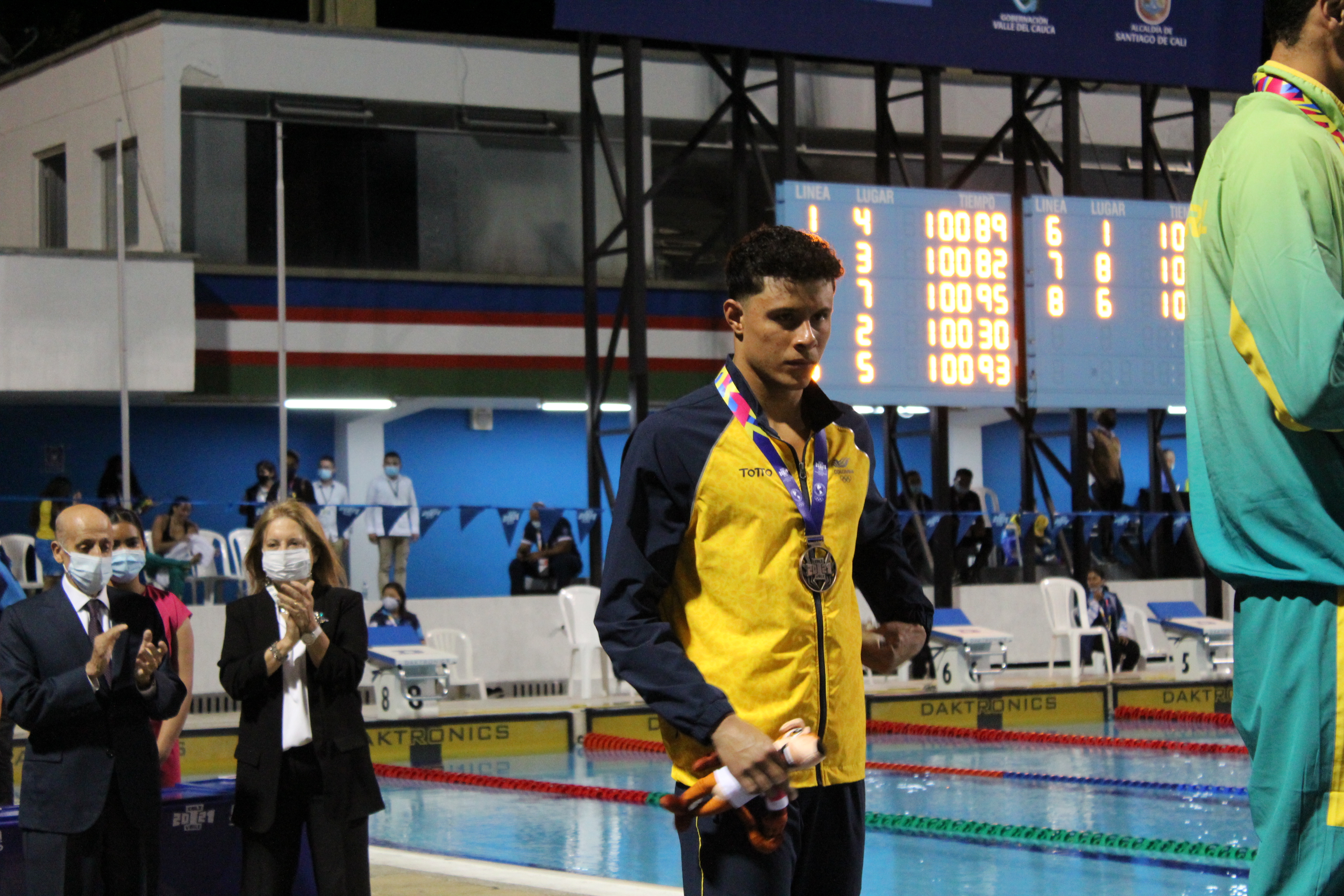 En el registro fotográfico observamos a Santiago Angel Corredor Zabala, quien se destacó y ganó en la competencia de natación en los "I Juegos Panamericanos Junior", los cuales se llevaron a cabo en la ciudad de Cali.