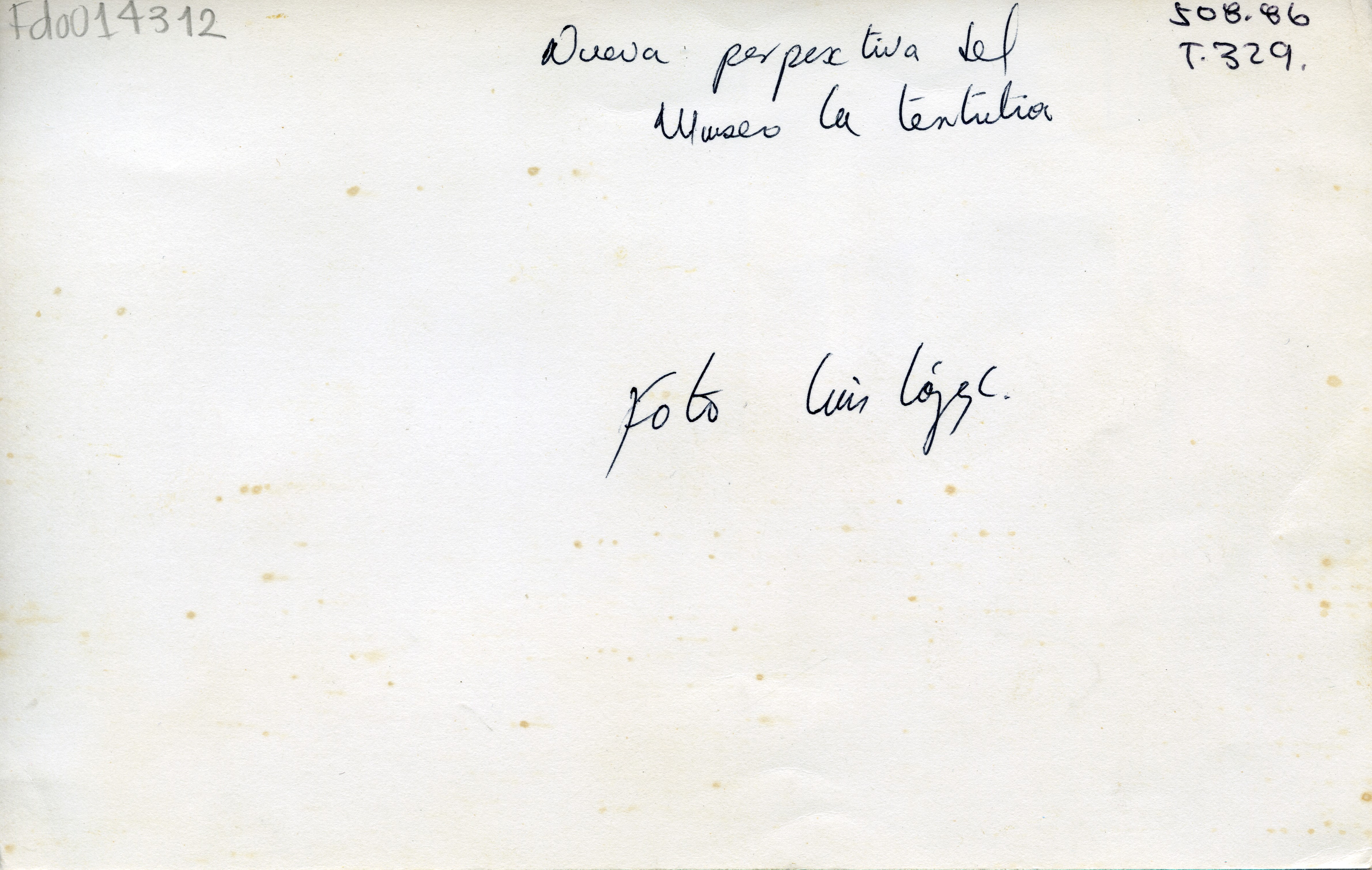 Aspecto del que en su momento fue el nuevo edificio del Museo de Arte La Tertulia. Al reverso de la fotografía dice: "Nueva perspectiva del Museo La Tertulia".