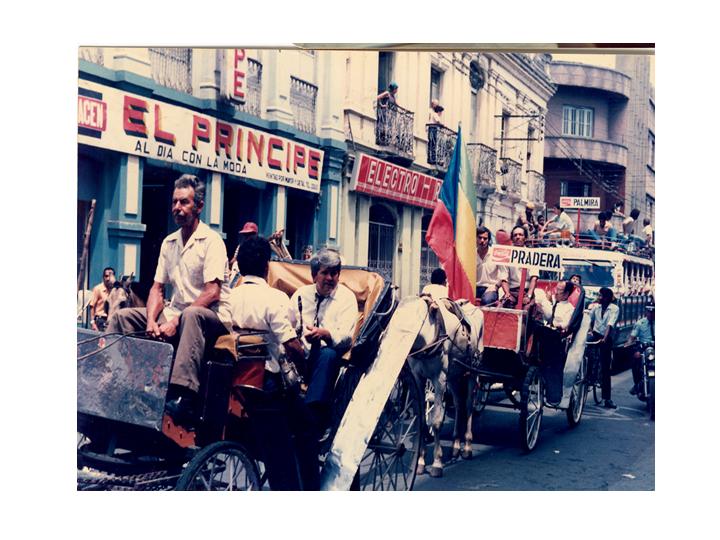 Desfile previo al Primer Concurso Departamental de Bandas, celebrado en el municipio de Palmira. Se observa la Victoria correspondiente a los músicos de Pradera. Palmira, 1985