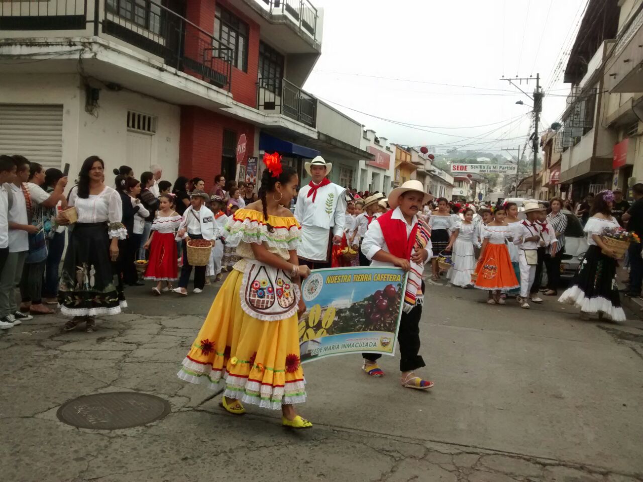 El Cairo, Valle del Cauca. Fundado en 1920, por Pedro Arango y otros. Nombres: Las Vueltas, Haceldama. Municipio desde 1947. Economía importante en agricultura, caficultura, entre otros. Atractivo turístico es su Bosque Natural de Las Amarillas en la Serranía del paraguas. Observamos en la imagen, casas típicas y la montaña
