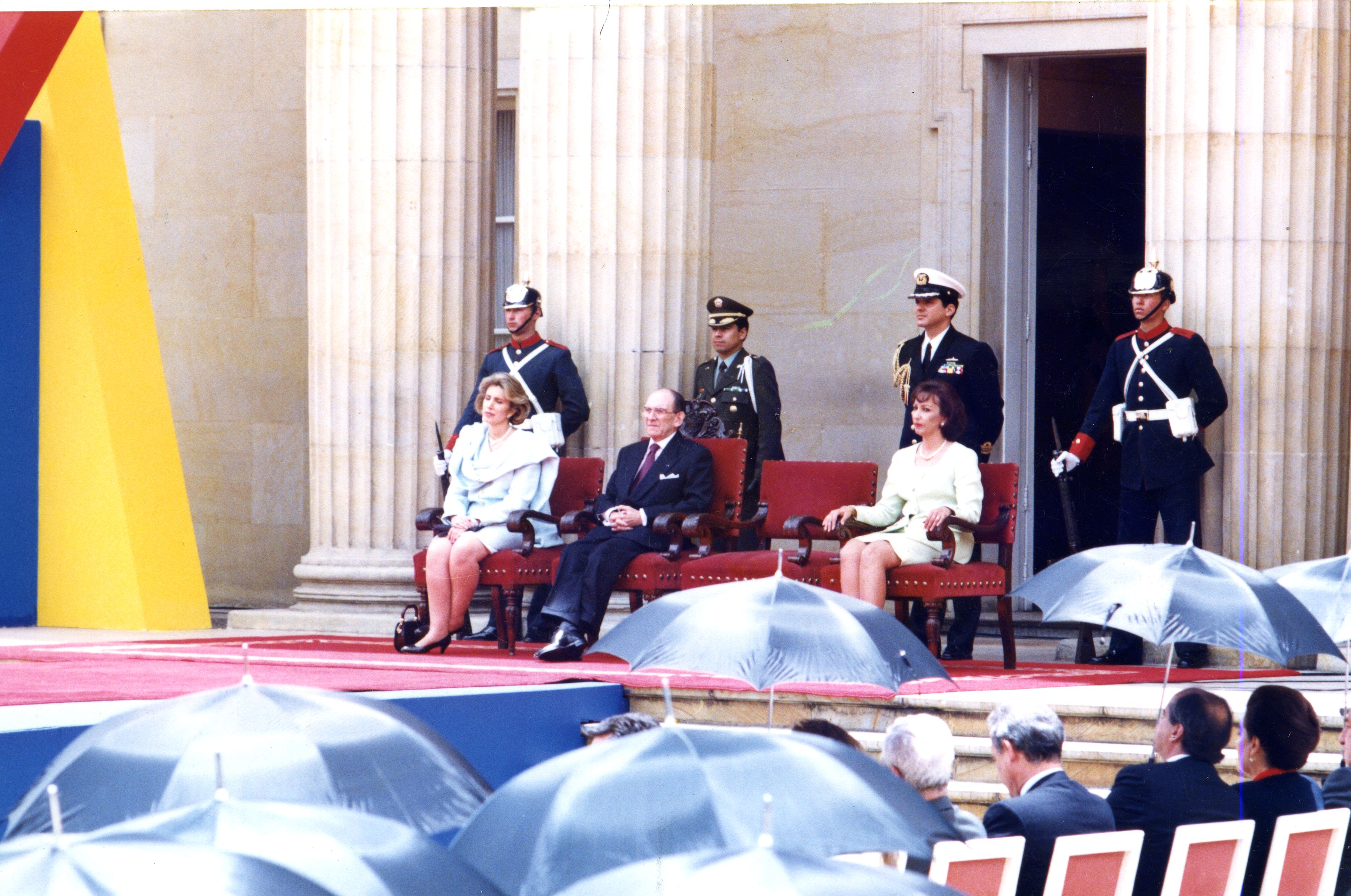 En la fotografía podemos observar al embajador Carlos Lemos Simmonds en el Palacio de Nariño en Bogotá, escuchando el discurso de bienvenida que está dando el mandatario Samper, por el nuevo cargo de vicepresidente que ocupará Lemos. Al reverso de la fotografía se anexa recorte: "No es que Samper se haya ido y su posición sea ocupado por Lemos Simmonds, sino que el mandatario dejó su puesto mientras pronunciaba el discurso de posesión al vicepresidente."