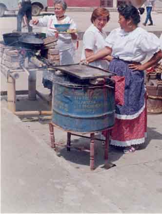 Las fritangueras preparan el fogón de carbón. Vijes, 1996