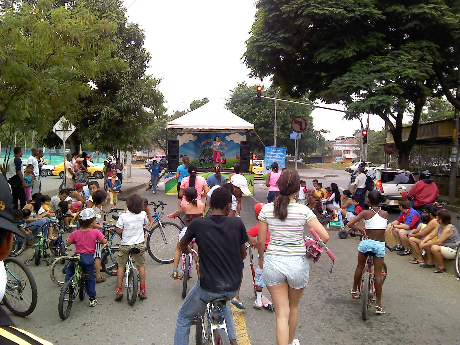 La CicloVida de Cali, es un programa de la Alcaldía de Santiago de Cali, liderado por la Secretaría del Deporte y Recreación, actividad incluyente para toda la ciudadanía, donde se cierran temporalmente las calles para los vehículos y se abren para los habitantes de la ciudad, todos los domingos de 8:00 am a 1:00 pm para que disfruten de un espacio seguro y gratuito para que en familia o amigos disfruten de la actividad física, recreación, deporte y cultura. Se aprecia en la imagen, personas haciendo ejercicios aeróbicos dirigidos con la instructora Jéssica Tatiana Tejada Amado. Observamos adultos y niños en bicicleta