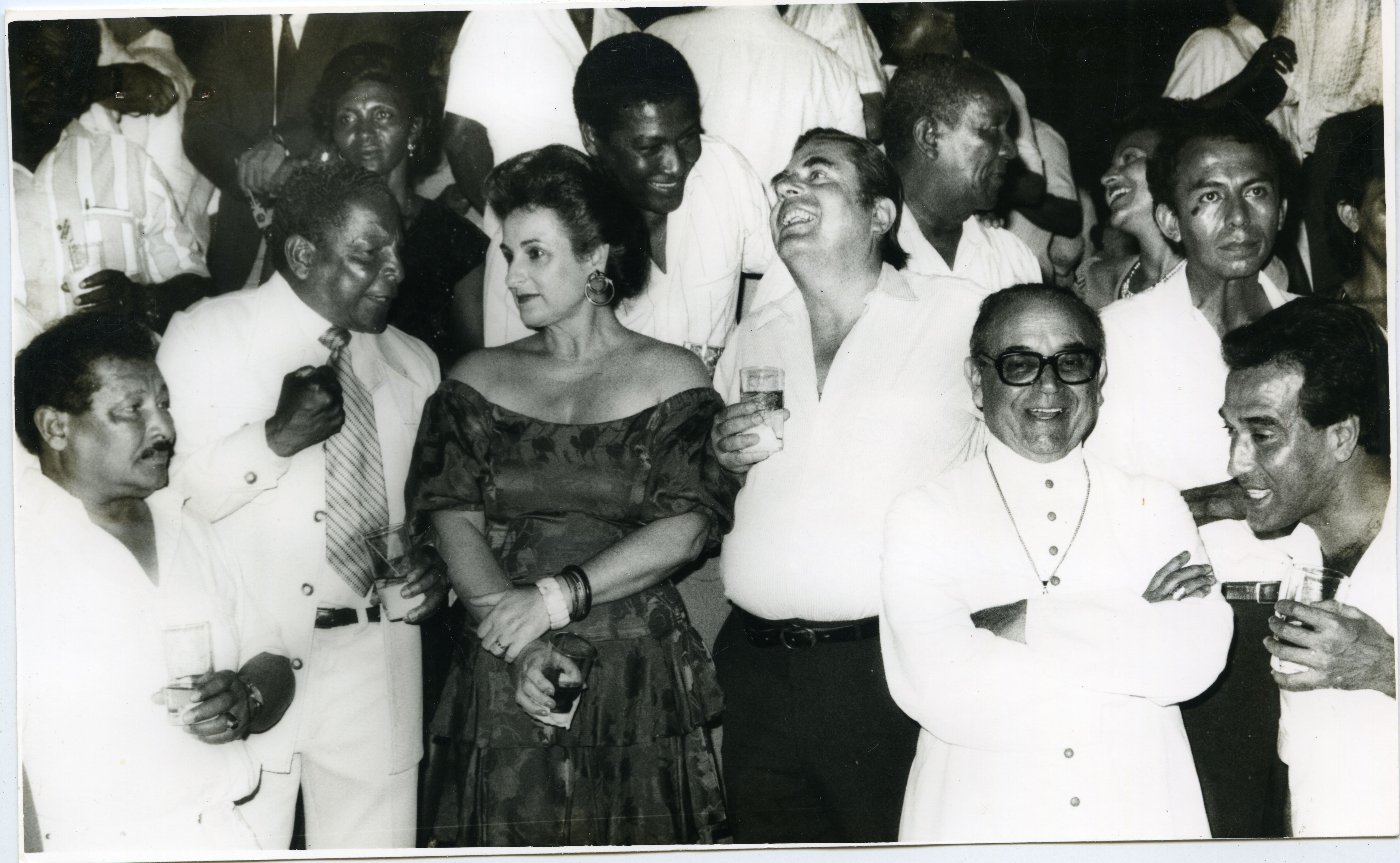 "Reverso: buenaventura. Cóctel ofrecido pr la municipalidad de Buenaventura a el señor Gobernador del Valle, doctor Ernesto González; Monseñor Eriberto Correa Yepes, Eugenio Paz, abadía de la cruz y el señor Riasco Rentería. foto Ivanar."