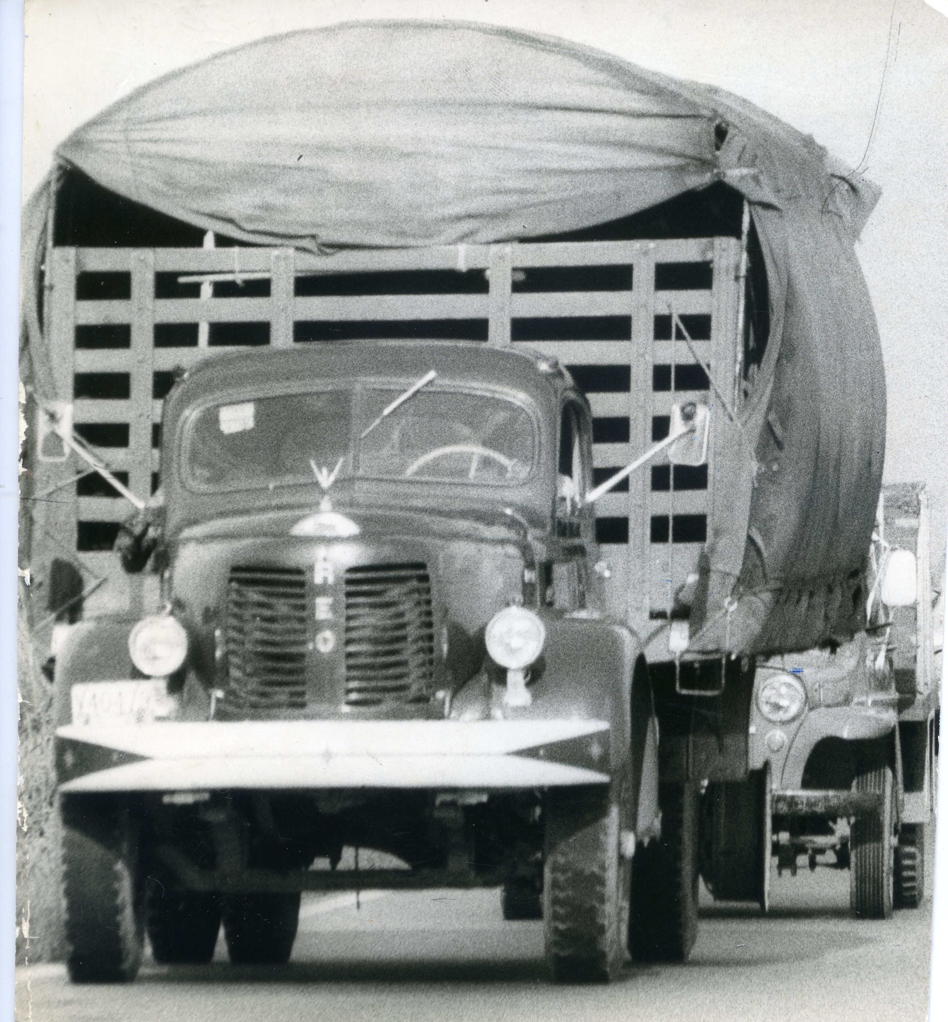 Se observa sobre la carretera Cali-Palmira un camión de carga, atrás se divisa parte de otro camión.