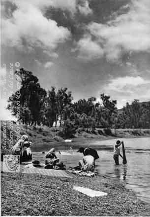 Lavanderas en el río Cauca, esta es una actividad típica de las comunidades pobres que habitan en cercanías al río. Santiago de Cali, Fecha por identificar.