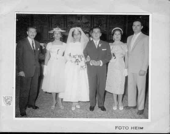 HEIM (1960). Matrimonio de Graciela Perlaza y Manuel Roldán, les acompañan Luz María D´Croise, Elsy Roldán y Marco Tulio Orozco & 100331. SANTIAGO DE CALI: Biblioteca Departamental Jorge Garces Borrero.