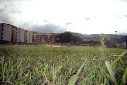 | dc.description | Toma a ras de piso. Se observan sujetos en medio de un partido de fútbol. Al fondo edificaciones y ladera. Plano general. | spa |