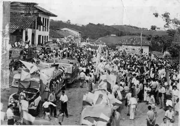 Entrada de los motorístas que participarían en una competencia deportiva. Restrepo, 1952.