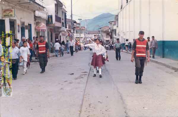 BANDA MARCIAL DEL COLEGIO SANTA ANA DE LOS CABALLEROS. ANSERMANUEVO 1996. ACTIVIDAD RECREATIVA, CON LA PARTICIPACION DE LOS JOVENES EDUCANDOS DEL AREA URBANA DEL MUNICIPIO.