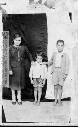 La condición de estar descalzo, establecía una posición en la sociedad. Se nota la gran diferencia del personaje de la izquierda con relación a los dos niños. Caicedonia. C. 1915