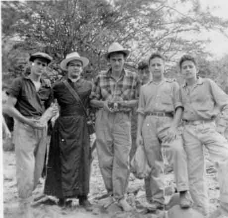 Alfonso y Hernán Alvarez de paseo a Río Grande, con otros amigos y con el cura a bordo. Restrepo, C.1955.